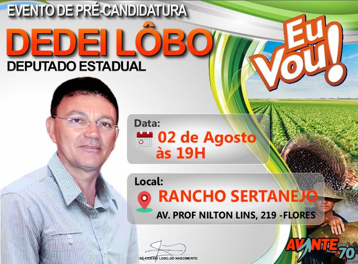 Está programado para a próxima quinta-feira (02) em Manaus o lançamento da pré-candidatura do ex-secretário de produção rural do estado DEdei Lobo.
